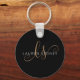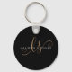 Moderno Dourado Script Feminino Negro Monograma Chaveiro. Personalize facilmente este moderno chaveiro elegante com o seu monograma e nome personalizados.