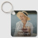 Honor the life and legacy of your beloved with our Elegant Script Photo Funeral Sympathy Keychain. This personalized keyring serves as a heartfelt tribute, capturing the essence of your loved one's memory with a simple and tasteful design. The keychain features a beautiful photograph of your loved one as the backdrop, complemented by elegant white calligraphy and classic sans fonts on the front. This keepsake will bring comfort and solace to all who have lost someone dear.