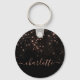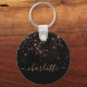 Crie seu próprio chaveiro de brilho de diamante preto e rosa com seu nome de script personalizado moderno e manuscrito.