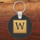 Elegante Black Dourado Classy Monograma, chaveiro de Script Inicial. Apresenta um fundo de padrão de diamante preto e dourado de luxo.