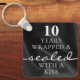 Celebrate the times with this 10 Years Wrapped & Sealed keychain. Designed classic black and white and elegant script text and a photo on the back, this keychain sets the tone for a luxury tenth milestone celebration. Whether it's for a business / wedding anniversary or 10th birthday party, this keychain is the perfect keepsake to celebrate your lasting accomplishment.