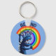 Chaveiro de bondade com um personagem bonito segurando um arco-íris e o texto "Seja gentil". Porque às vezes temos que nos lembrar que só ser um bom humano faz o mundo um pouco melhor.