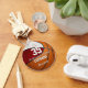 Este chaveiro de basquete esportivo para raparigas com marrom e cores brancas personalizadas apresenta um gráfico de basquete com nome de jogador facilmente personalizável e número de camisa mais nome da escola e nome de mascote - dois dos painéis do basquete têm uma aparência artística, um misturado com maroon e o outro misturado com branco - o número de camisa do jogador e o nome da mascote da equipe estão em estilo varsity, e o nome do jogador e o nome da escola está em uma fonte de estilo de script feminino - por katz_d_zynes