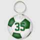 Este teclado de futebol fácil de personalizar apresenta a imagem realista de uma bola de futebol que tem painéis verdes e brancos, sobre os quais você pode personalizar o nome do atleta, número de camisa, nome da equipe e mascote e ano na frente e letra de monograma ou varsidade no verso - por katz_d_zynes
