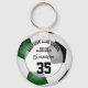 Este teclado de futebol fácil de personalizar apresenta a imagem realista de uma bola de futebol que tem painéis verdes, pretos e brancos, sobre os quais você pode personalizar o nome do atleta, número de camisa, nome da equipe e mascote e ano na frente e letra de monograma ou varsiedade no verso - por katz_d_zynes