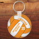 Este chaveiro de vôlei personalizado com o nome da equipe apresenta um vôlei laranja e branco sobre o qual você pode personalizar o nome do jogador e o número de camisa mais a equipe da escola e o nome do mascote - por katz_d_zynes