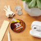 Esta equipe colorido chaveiro de basquete para rapazes ou raparigas apresenta a imagem realista de uma bola de basquete que tem dois painéis recoloridos - um marrom e um ouro - personaliza facilmente com o nome do jogador e o número de camisa - por katz_d_zynes