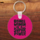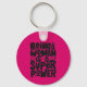 O chaveiro de botão redondo apresenta texto divertido sobre fundo rosa quente. Chaveiros fazem presentes memoráveis para familiares e amigos ou criam por si mesmos.