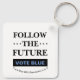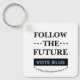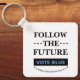 Um chaveiro com um texto e um design de estrelas dizendo "Siga o Futuro. Vote Blue. Fique Com Democracia". Ideal para Harris-Walz ou campanha democrática geral. Mas você pode personalizar o texto de acordo com sua filiação política. Todos os elementos do design são personalizáveis.