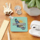 A imã de geladeira divertida apresenta um gráfico cênico de estilo retrô da silhueta de estado de Delaware em um fundo aqua. Personalize atrás com monograma ou mensagem.