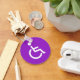 Tecla com um sinal de deficiente branco e roxo ou um símbolo de deficiência com um deficiente sentado numa cadeira de rodas. Versão feminina do símbolo clássico utilizado para estacionamento para deficientes, sanitários para deficientes e deficientes e muito mais. Também disponível em outras cores.