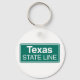 Sinal de estrada do Texas State Line escrito em branco sobre um fundo verde. Esta design parece realmente eficaz nestes Chaveiro