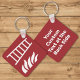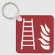 Escada de incêndio e ícone de chama em fundo vermelho. Texto personalizado no verso.