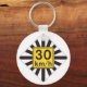 Um sinal de estrada com limite de velocidade 30, com fundo riscado. Esta design parece realmente eficaz nesta Chaveiro