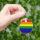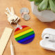 Um simples design de arco-íris num chaveiro redondo. Mostre-o orgulhosamente na sua próxima parada do orgulho ou no seu veste diário.