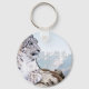 Um orgulhoso leopardo-da-neve se senta contra seu hábitat montanhoso.