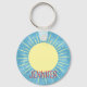 Pintura digital bonita de um sol amarelo no céu azul. Adultos e crianças chaveiros personalizados. Editar nome para personalizar. Ideia do presente.
