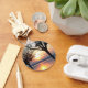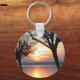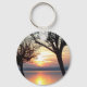 Design: Ein romantischer Sonnenuntergang am See, in dem sich die orange Sonne zwischen zwei schwarzen Baumsilouetten spiegelt.