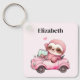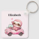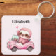 Um chaveiro com uma ilustração caprichosa. Uma preguiça rosa dirigindo em um conversível rosa. Adorável.