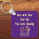 Chaveiro Key Ring Holder impresso com Sew And Sew Me Disse Que Você Adora Sewing Criativo texto com a ilustração gráfica de design de arte com costura por TheFabricSeal impressão a pedido compra em Zazzle.com #ZazzleMade https://www.zazzle.com/store/thefabricseal TheFabricSeal ©️ Original. Esta divertida design neutra de gênero é uma dádiva perfeita que dá ideia para todos os níveis de entusiastas costurantes. Combinando um trocadilho humorístico e um desenho legal de uma máquina de costura com beijos de batom por toda parte. Este design está no formato PNG e pode ter qualquer opção de fundo de cor desejada. As cores que usei são para mostrar algumas ideias diferentes. Pegue O Seu Hoje. Obrigado. Todos os produtos e designs de trabalho de arte em nossa loja podem ser personalizados com texto de sua escolha, se você precisar e quiser continuar os processos de personalização. Obrigado por escolher, procurar e comprar no TheFabricSeal.
