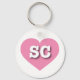 Esse chaveiro apresenta um coração cor-de-rosa vibrante contendo as letras maiúsculas, brancas e em negrito SC, abreviação oficial da Carolina do Sul, o estado do palmetto.