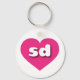 This keychain features a vibrant hot pink heart containing the bold, white, rounded, lower case letters sd, a playful abbreviation for South Dakota, the Mount Rushmore state.
