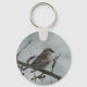 Foto mudada em cinzas suaves e tons cor-de-rosa de um pardal ficou em um galho.