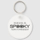 Simple and modern Spooky Typography Halloween Keychain in white and black featuring a cool text design with two whimsical ghosts peeking through the word "Spooky." This fun Halloween keychain lets you easily keep track of your keys and show the world a bit of Halloween flair! Easy to customize, add your own spooky text. Click on the "Customize It" button to move the design element, change the fonts or text colors, and add/remove additional text.