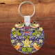 Chaveiro com o design têxtil William Morris Strawberry Thief (1883). Quatro pássaros coloridos roubam morangos em meio a uma floração vibrante. Um presente maravilhoso para amantes de os animais e entusiastas de arte vitorianos.