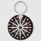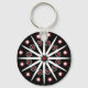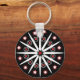 This colourful keychain, zip pull, features a bright eye catching design with a white central radial motive and red and white stars on a black background. Bold, colourful and unusual. A great useful accessory to keep your keys safe and a lovely little gift.