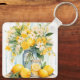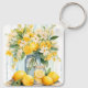 Flor vibrante enfiada num pote, cercada por limões frescos. Uma mistura deliciosa de beleza e zest da natureza.