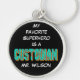 O meu super-herói favorito é uma cadeia-chave de custódia. Personalize com seu próprio texto. Estilos brancos de quadrinhos em um fundo preto. Faz um presente de apreciação da guarda de excelentes!
