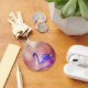 Uma encantadora imagem de conto de fadas. Foto romântica macia de um cisne branco em luz roxa nadando em um lago magra. Púrpuras e pinças coloridas criam um humor mágico místico.