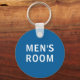 Chaveiro com texto branco sobre fundo azul: quarto de homem.