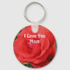 Amo-Te Mãe, com uma rosa vermelha bonito no cheio, com lentidão de gotas de chuva chaveiro. Fotografia da Flor por Susan. Você pode alterar ou adicionar qualquer texto que desejar. Ideia de presente de excelente para aniversários, Dias de as mães, Dias de os namorados ou qualquer ocasião. Esta imagem está disponível em muitos produtos da minha galeria.
