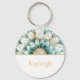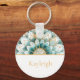 Chaveiro Teal Blue Dourado Floral Mandala Personalizado