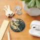 This striking artwork features a textured howling wolf illustrated in gray and teal shades, set against a stylized cream moon with bold teal stripes. Below the moon lies a detailed forest silhouette that completes the wild, atmospheric scene. With its limited vintage-inspired palette and dramatic composition, this design is perfect for nature lovers, wolf fans, and anyone drawn to bold wilderness aesthetics.