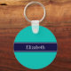 Chaveiro Teal Sólido, Marinho Azul Nome da Faixa Monograma
