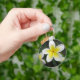 Flor e gotas de chuva Frangipani em um teclado na faixa de cartas e presentes de Manor Hill.