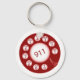 Um telefone de emergência antigo, discagem rotativa em vermelho. Esta design parece realmente eficaz nestes Chaveiro