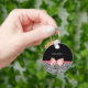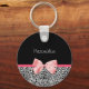 Um chaveiro de impressão leopardo preto e branco de tendências com um arco de fita rosa giro embrulhado como um presente. Personalize adicionando seu nome. Presente perfeito para uma menina adolescente!