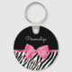 Um chaveiro básico de impressão zebra preto-e-branco moderado decorado com uma fotografia de uma fita rosa-quente chic atada a um arco giro. Personalize este design de impressão de animais rosas e pretos que está na moda, adicionando o nome da sua garota favorita. Imagem impressa plana, NÃO arco real.