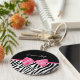 Um chaveiro básico de impressão zebra preto-e-branco moderado decorado com uma fotografia de uma fita rosa-quente chic atada a um arco giro. Personalize este design de impressão de animais rosas e pretos que está na moda, adicionando o nome da sua garota favorita. Imagem impressa plana, NÃO arco real.