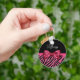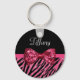 Sua adolescente se sentirá imersa no luxo feminino com este designer chic, cor-de-rosa e preto, de zebra, chaveiro básico com uma fita cintilante de sequência amarrada em um arco luxo. Personalize este design de moda de impressão de animais brilhantes e reluzentes adicionando seu nome. Imagem impressa plana, não brilho real ou fita.