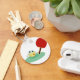 Uma ilustração bonita de uma bola de tênis de mesa segurando um taco de tênis de mesa pronto para jogar. Imagem disponível em vários presentes e produtos. Teclas. Chaveiros.