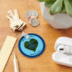 Leitura de texto azul, "TERRA e CORAÇÃO são soletrados com as mesmas letras", sobreposta a uma folha verde em forma de coração. Adicione seu próprio texto adicional. Você pode alterar a cor do plano de fundo e da borda, bem como a cor do texto.