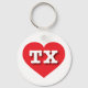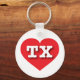 Esta cadeia-chave apresenta um coração vermelho vibrante contendo as letras maiúsculas, brancas e em negrito TX, a abreviação oficial do Texas, o estado de estrela solitária.