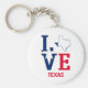 Texas love - Texas em letras vermelhas maiúsculas, com a palavra amada preenchida com a bandeira estadual. A letra O apaixonada é a silhueta com o contorno do estado do Texas.