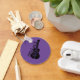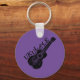 Desenho preto com texto personalizado. Chaveiros ukulele personalizados com fundo roxo. Design original. Ideia de presente para amantes de ukulele.