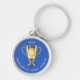 Adicione iniciais para personalizar este chaveiro e edite a legenda (em letras coloridas de ouro correspondentes) "O MELHOR AMIGO DO MUNDO Nº 1". O design mostra um troféu de cor ouro sobre um fundo azul brilhante.